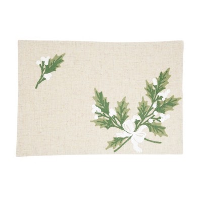 Saro Lifestyle Linen Blend Holly Leaves Placemat (Set of 4), 13"x19", Natural