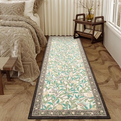 Washable Framhouse Floral Leaf Print Large Living Room Rugs, Soft Ultra Thin Textured Cute Floor Carpet for Bedroom Dining Room Nursery Playroom