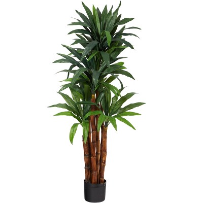 Nearly Natural 5-ft Bamboo Artificial Tree with Black Trunks in White Planter UV Resistant (Indoor/Outdoor)