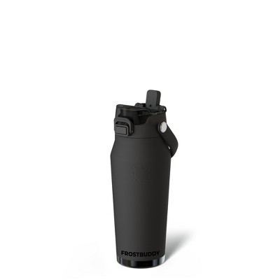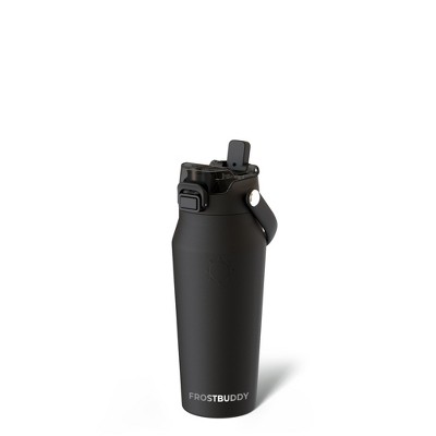 Frost Buddy 24oz Insulated Water Bottle with Straw & Chug Lid – Stainless Steel, Leak-Proof, 24-Hour Cold, Cup Holder Friendly (Black)