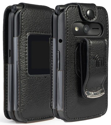 Nakedcellphone Case for Verizon eTalk Flip Phone - Vegan Leather with Belt Clip - Black