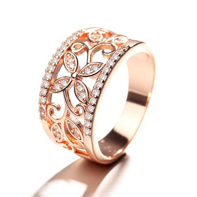 18K Rose Gold Ring with Preciosa Crystals Floral-Motif Eternity Band