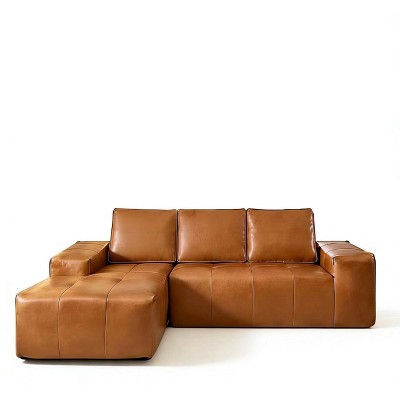 - leather sectional camel