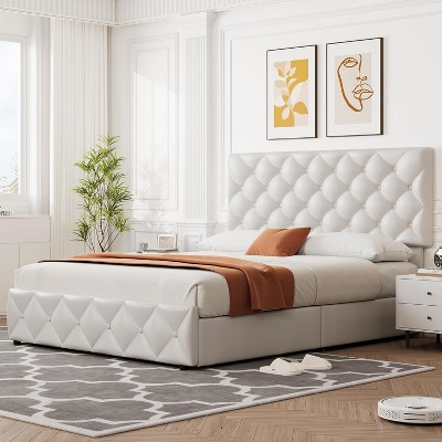 - leather headboard platform bed