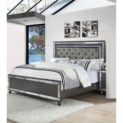 - grey upholstered bed