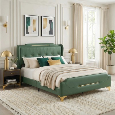 - green upholstered bed