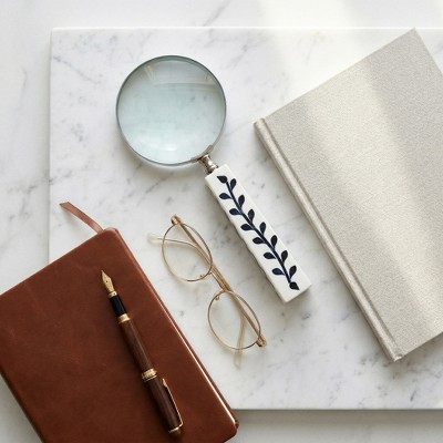 Decorative Resin and Glass Vines Handle Magnifying Glass Object for Home Decor - Modern Figurine Accent for Living Room Decoration - 10", Blue & White