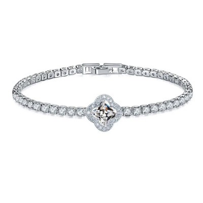 Hollywood Sensation Elegant Crystal Clover Tennis Bracelet - Sparkling Sophistication 6.875 Inches Gold