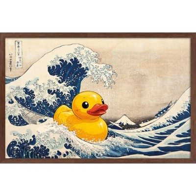 Trends International Rubber Duck - Great Wave Framed Wall Poster Prints