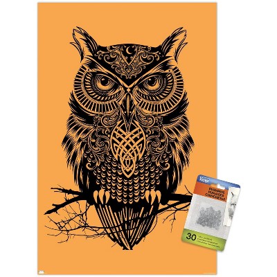 Trends International Rachel Caldwell - Warrior Owl On Orange Unframed Wall Poster Prints