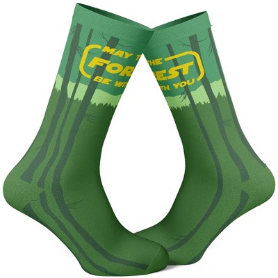 Jurassic World Socks Men's Tropical Foliage Logo AOP Sublimated Crew Socks 1 Pair Fits Shoe Sizes 8-12 Green