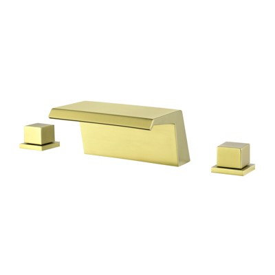ChicFurnit Bathroom Sink Faucet Deck Mount Waterfall Tub Spout Set with Hand Shower for Luxury Bathtubs, Gold, 16"*13"*4"