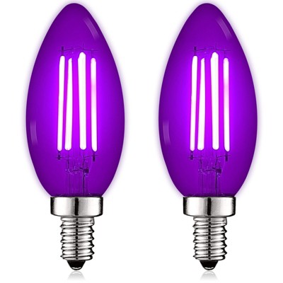 Luxrite E12 LED Filament Purple Light Bulbs, 4.5W (40W Equivalent), Colored Glass Candelabra Bulb, UL Listed, E12 Base, Indoor Outdoor 2 Pack