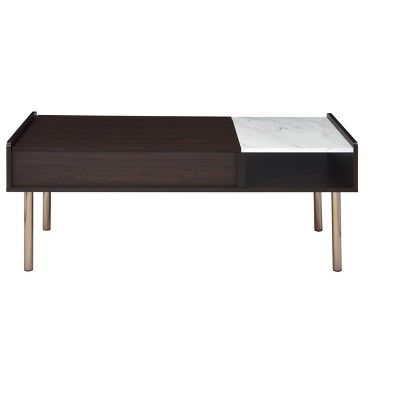 40.16inRattan Coffee table, sliding door for storage, metal legs, Modern table for living room , white