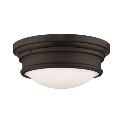 Progress Lighting Carriage Classics 1-Light Flush Mount, Antique Bronze, Etched Alabaster Glass