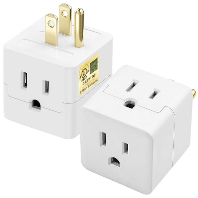Itopfox 3 Outlet Wall Adapter, Cube Tap Plug Extender, 3 Way Wall Outlet Adapter, Multiple Plug Expander, UL Listed, White, 2 Pack