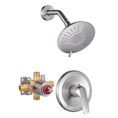 WOWOW Single Handle 5-Spray Shower Faucet 1.8 GPM with Pressure Balance, Corrosion Resistant in Brushed Nickel