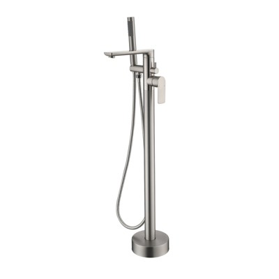 Cobbe Single Handle Freestanding Floor Standing Tub Faucet with Swivel Spout, Handheld Showerhead and 59-Inch Hose Shower Faucet Brushed Nickel