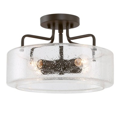 Prominence Home Madalyn 13 Inch Flush Mount Ceiling Light Fixture with Clear Round Glass Shade for Bathroom, Kitchen and More, Bronze