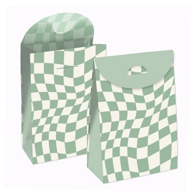 Big Dot of Happiness Sage Green Checkered Party - Gift Favor Bags - Party Goodie Boxes - Set of 12