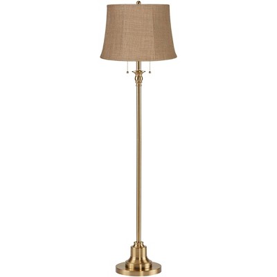 360 Lighting Dyna Traditional 58" Tall Standing Floor Lamp Skinny Pole Pull Chain Gold Antique Brass Finish Living Room Bedroom Burlap Natural Shade
