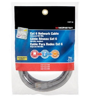 Monster JHIU 140277-00 Cat 6 Network Cable, Gray, 7'