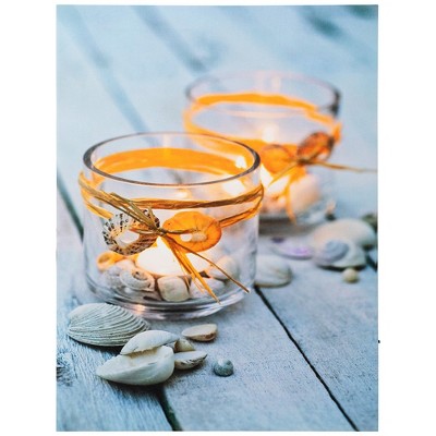 Northlight LED Lighted Flickering Seashell Tea Light Holders Canvas Wall Art - 11.75" x 15.75"