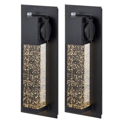 John Timberland Industrial Outdoor Wall Light Fixtures Set of 2 Black Metal LED 8" Seedy Glass for Exterior Barn Deck House Porch