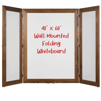 Excello Global Products 40" x 60" Wooden Wall Mounted Folding Whiteboard (Brown)
