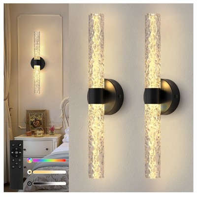 YANSUN Set of 2 Stone-Texture Glass Linear LED Wall Lights, Matte Black Finish, Integrated LED, 6W, RGBCW