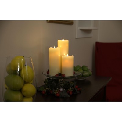 LumaBase Battery-Operated 3D-Wick Pillar Candles - Set of 3