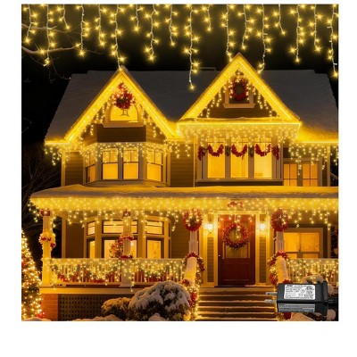 Itopfox 33ft 400 LED Icicle Christmas Lights 80 Drops Connectable 8 Modes Warm White with Timer Memory Indoor Outdoor Waterproof 1 Pack