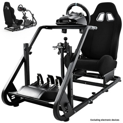 Dardoo Racing Sim Cockpit with Black Seat Adjustable Stand Compatible with Logitech, Thrustmaster & PXN Wheel & Pedal & Shifter Not Included