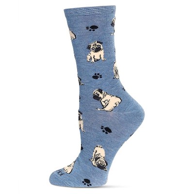 Memoi Women's Pugs Bamboo Crew Socks Denim Heather 9-11