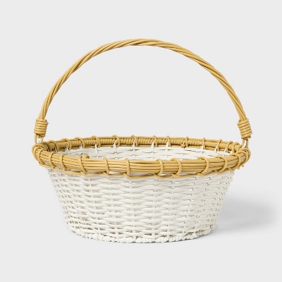14" Easter Plastic Willow Basket White with Natural - Spritz™