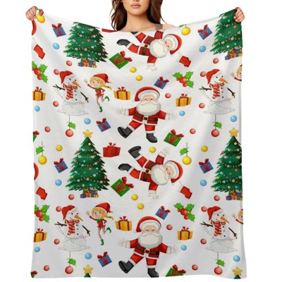 FIONECA Cute Cartoon Santa Reindeer Gingerbread Man Blanket with Wreath Soft Fleece Cozy Holiday Throw Blanket 30x40 inches
