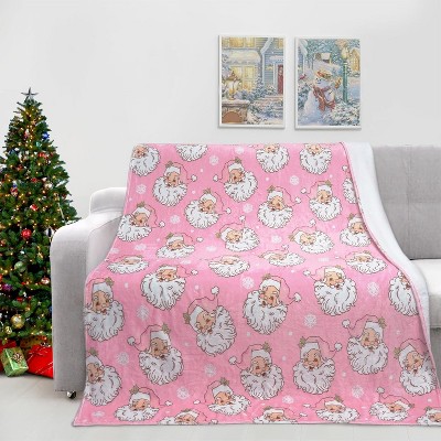 FIONECA Magenta Christmas Snowflake Gingerbread Man Pattern Cozy Fleece Blanket Holiday Warm Soft Throw Blanket 60x80 inches
