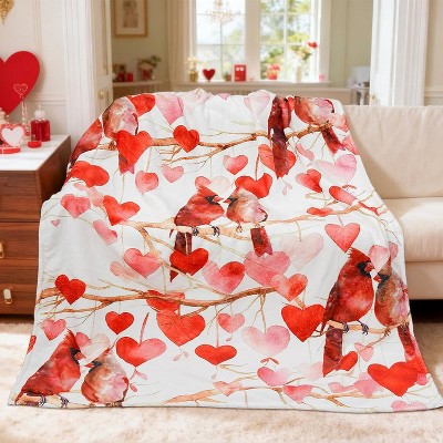 Lomsoe Valentines Blanket Red Bird Decor Red Heart Blanket Ultra Soft Cozy Anniversary Wedding Gift for Lover.