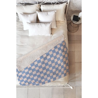 Hastings Home Fleece Blanket Throw – Blue and White, 50" x 60"