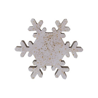 Storied Home Large Handmade Enameled Mango Wood Snowflake with Gold Splatter, Cream and Gold