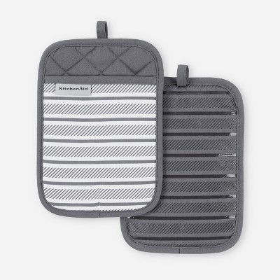 KitchenAid Albany Pot Holder 2-Pack Set, Charcoal Grey, 7"x10"