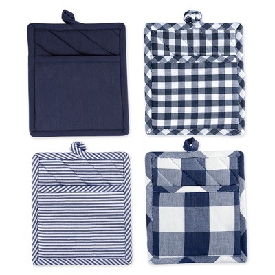 Martha Stewart 2pk Strie Medallion Pot Holder Set Navy Blue: Classic Woven Cotton & Polyester Kitchen Textiles, 10"x7"