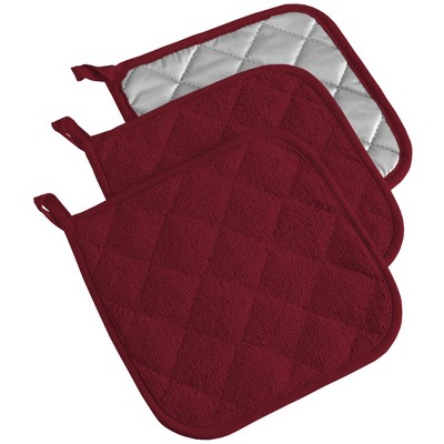 Design Imports Terry Solid Potholder Set 3 Piece Wine 7X7"