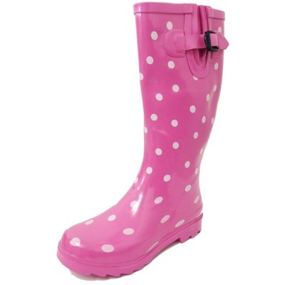 Women's Rain Boots Pink Polka Dots Rubber Mid Calf Snow Rainboot