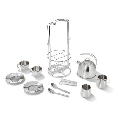 Melissa & Doug Stainless Steel Pretend Play Tea Set and Storage Rack (11pc)