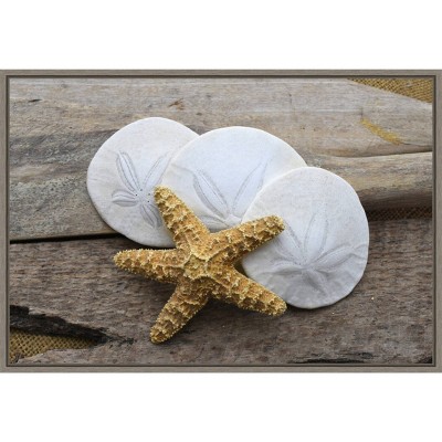 23" x 16" Sand Dollar and Starfish Still Life by Savanah Plank Danita Delimont Framed Canvas Wall Art - Amanti Art