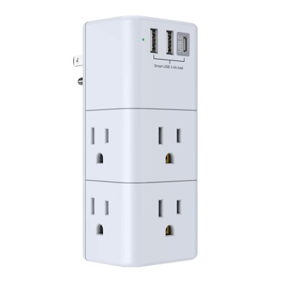 Itopfox 3-Outlet USB Wall Charger with 3-Way Splitter, ETL Listed for Home, Office, Cruise Ship - Compact Multi Plug Adapter