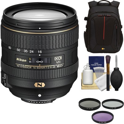 Nikon AF-S DX NIKKOR 16-80mm f/2.8-4E ED VR Lens with 3 UV/CPL/ND8 Filters | CaseLogic Backpack Package