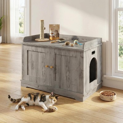 Cat Litter Box Enclosure Hidden Litter Box Cabinet with Wooden Barn Door, End Table Style Indoor Cat House Fits Most Litter Boxes for Living Room
