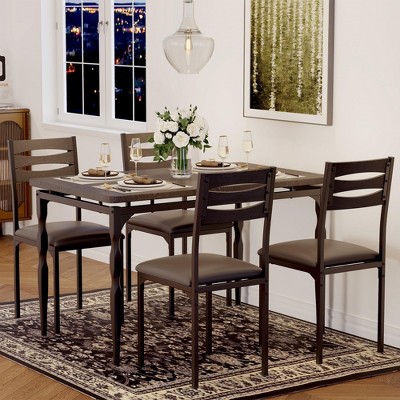 HomeStock 5-Piece Black and Cherry Finish Solid Wood Top Dining table with 4 Chairs with Slat Back